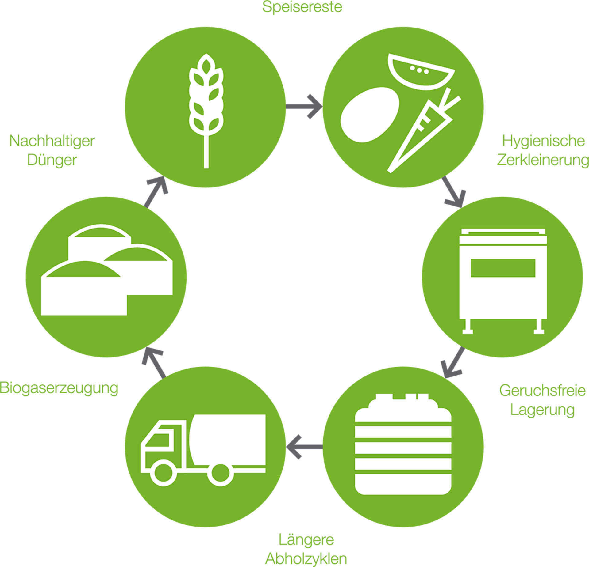 Kurz gesagt: Es geht um zukunftsorientierte Lösungen! Speisereste und organische Küchenabfälle sind ein wertvoller Rohstoff und Energielieferant, von dem tagtäglich weltweit Unmengen anfallen. Wir sprechen vom Zurückführen in den Energie- und Verwertungskreislauf, wir sprechen von Wertschätzung, wir sprechen aber auch von einem maßvollen Umgang mit vorhandenen Ressourcen und sind gegen Verschwendung.